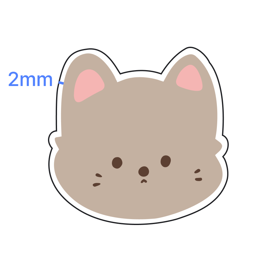 - 커팅 예정 라인으로부터 최소 2mm 이상 여백 확보가 필요합니다.