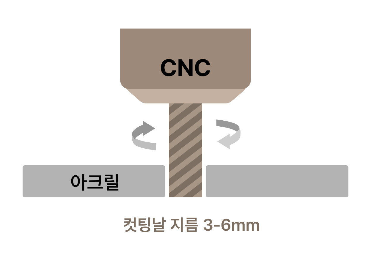 - 소재는 오직 아크릴만 가능하며 (포맥스, 폴리카보네이트 불가) 오직 컷팅만 됩니다.
