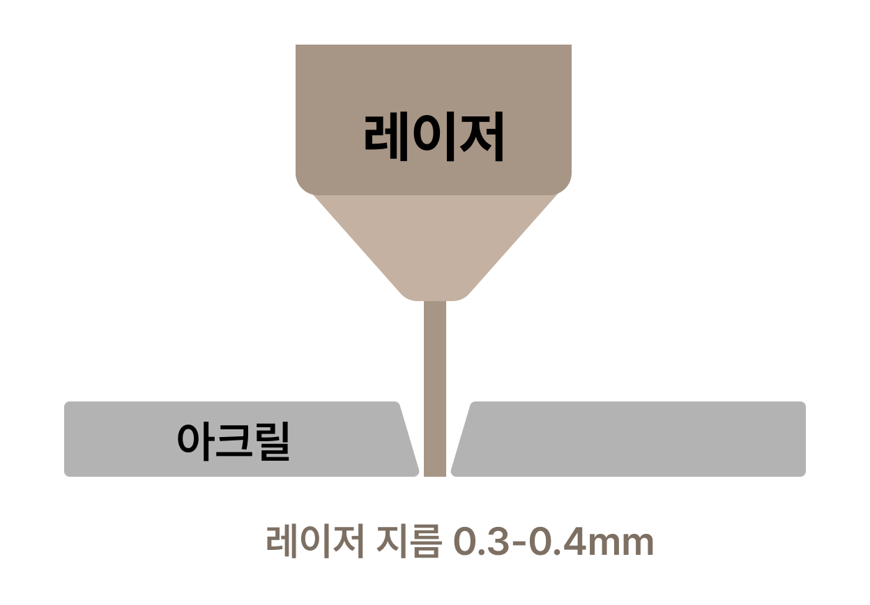 - 레이저의 높은 열로 순식간에 아크릴을 컷팅합니다.
