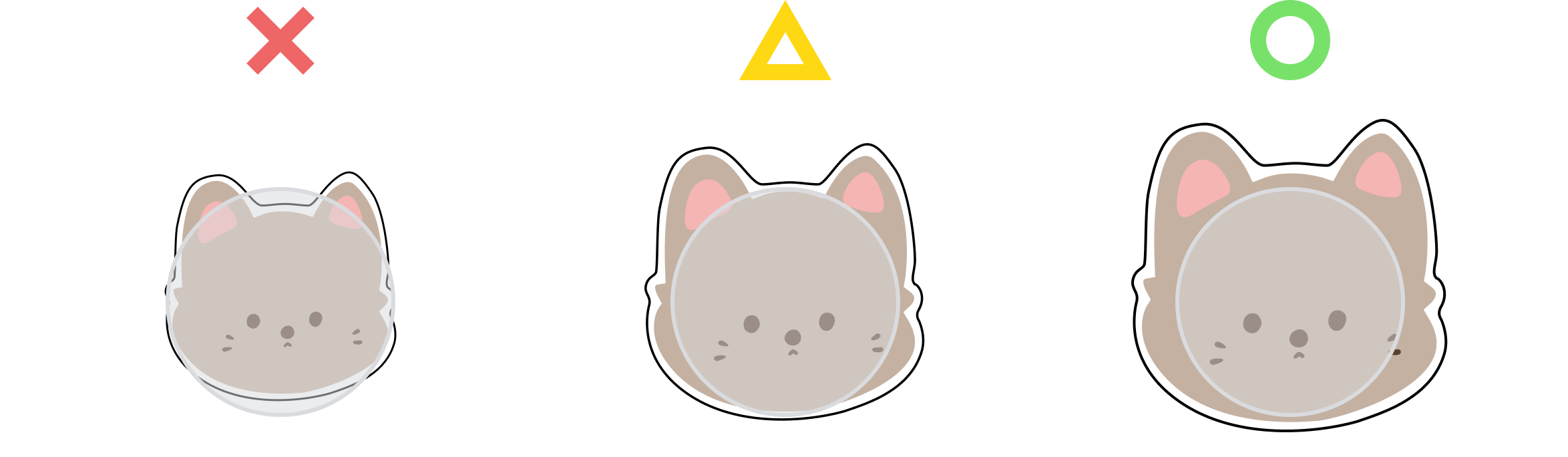 - 원형바디가 칼선크기보다 작으나, 인쇄부분보다 커서 삐져나옴 → 투명바디 사용시 제작 가능